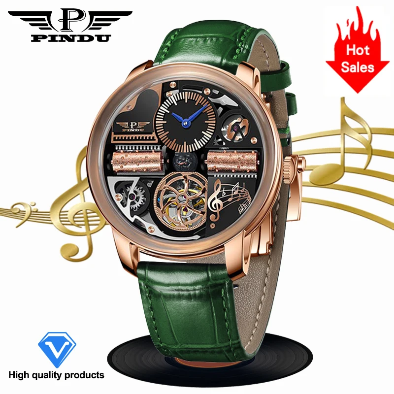 2025 PINDU Music Series Luxury Automatic Watch - Stainless Steel, Sapphire Glass, Hollow Design